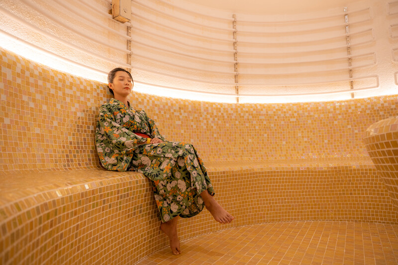 Bên cạnh các bể tắm, khu onsen còn có phòng xông hơi khô và xông hơi ướt theo phong cách Nhật, mang lại trải nghiệm thủy liệu pháp khá trọn vẹn. Việc ngâm mình trong nước khoáng ấm kết hợp xông hơi giúp cơ thể giải tỏa căng thẳng, cải thiện sức khỏe và tái tạo năng lượng sau những ngày làm việc bận rộn.